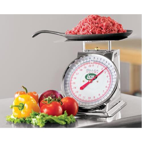 Take advantage of this large, heavy duty stainless steel scale that weighs items up to 44 lbs. The scale has a large 8" dial and measures pounds in 2 oz. increments or kilograms in 50 gram increments. Sturdy steel base supports a large 10" x 8" stainless steel platform. A quality unit at a sensible price. Weight 5 lbs.