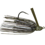 This jig can be dragged, swam, stroked, or flipped and retrieved through rocks, trees, bushes and grass with ease. The semi-flat, keel weighted belly of the head was designed to create a secondary swimming action and also ensure the ability to skip under docks or willows. The wide tapered points of the outside of the head will help deflect cover and also help maintain posture, giving it the ability to lie flat on the bottom (which makes for the perfect bed fishing jig).