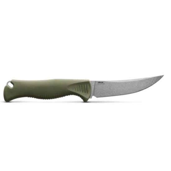 From field processing to food prep at your outdoor camp kitchen, the 15505 Meatcrafter® 4" gleans its comfortable handle ergonomics and hybrid fixed-blade profile and engineering from its full-size counterpart, yet offers a slightly smaller blade for even finer, more precise, and detailed work. The trailing-point CPM-154 premium stainless-steel blade with SelectEdge® is specifically designed for processing smaller animals and breasting out large game birds and poultry, the perfect amount of blade for delicate cuts around the breastbone. With a Dark Olive Santoprene® handle for a sure grip in wet environments, the Meatcrafter® 4" is a no-limits hunt tool for the skilled hunter.