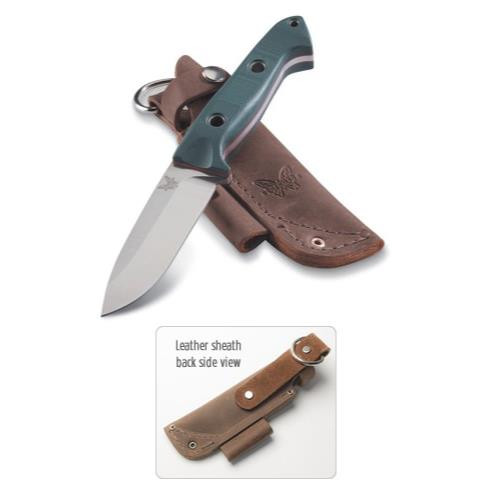 • High ground drop-point blade with polished finish • S30V stainless steel blade (58-60HRC) • Hand-blended and contoured green G10 handles with red vulcanized spacer held together with pressed titanium tubing • Brushed full-grain buckskin leather sheath with D-ring and flint rod loop and retention strapFeatures
