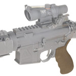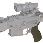 This ergonomically designed pistol grip with finger grooves. It is comfortable, prevents fatigue, and aids in controlling the weapon even when you wear gloves. The aggressive textured grip surface minimizes slippage and is virtually impervious to oils and solvents used on firearms.