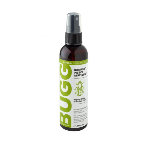 BUGGINS Natural Insect Repellent features a soft vanilla scent and a proprietary blend of essential oils. This natural formula is not sticky or greasy and is ideal for use on the whole family.