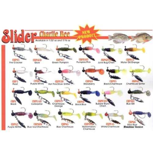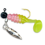 This is a small panfish lure that is 1/32oz. Ideal for catching Crappie,Blue Gill,Rock Bass,and Perch. Also some nice Smallmouth Bass have been caught on this lure. It features a soft plastic body with a vibra-tail and also a small willow blade for a little extra flash. The lure is offered in 10 colors. There is one lure per pack with two spare grubs.