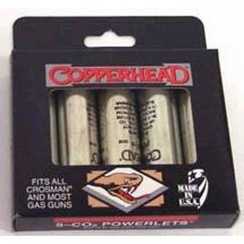 Copperhead Powerlet 12-gram CO2 cartridges provide you with a snug fit and solid seal for a reliable, consistent performance with almost any gas-powered gun. 5-count package.