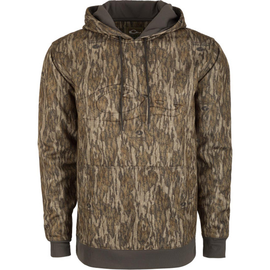 The Drake Back Eddy Embossed Logo Hoodie features 100% polyester with a raised Drake logo, which gives you a stretchy hoodie that keeps its shape. We finished the hoodie with a DWR coating which helps shed a light rain or snow shower. It is a great piece to wear alone, or it can be used as a mid-layer piece for those chilly winter mornings. Complete with a traditional kangaroo pocket to keep your hands warm along with a 3-piece lined hood with adjustable drawstrings for adjustability, the Embossed Logo Hoodie will be part of your wardrobe for years to come.