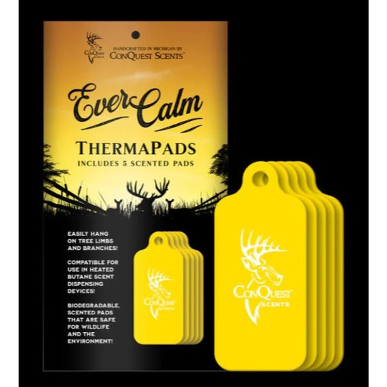 EverCalm Therma Pads are scented with our popular EverCalm scent. EverCalm Deer Herd Scent is a collection of scents from deer bedding areas that can be used in all seasons. These scents put deer at ease and help them feel safe.
