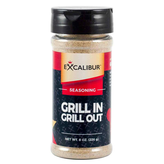 Add the taste of a charcoal grill to something you cooked on propane or even inside the house with this Grill-In Grill-Out seasoning from Excalibur! This is one of our most popular and best-flavored seasoning shakers for a reason, as it can be used on steaks, burgers, roasts, briskets, chicken, or anything else you can think of! Small Particle Size.