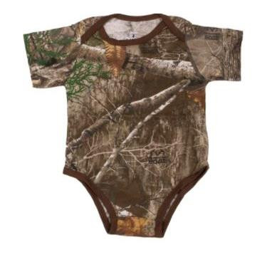 Our new infant and baby short sleeve camo bodysuit set features a comfortable cotton poly material and available in King's Woodland Pink and Realtree EDGE Camo. This adorable baby onesie features a lap shoulder neckline and a 3-snap closure for ease of changing.