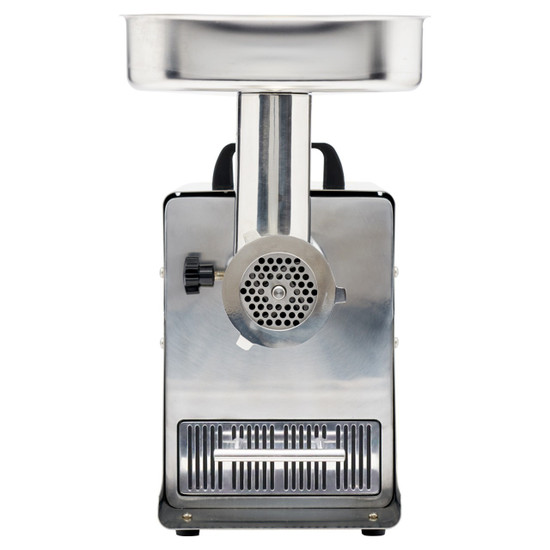 Upgrade your food processing with the #8 BigBite® 0.5 HP DualGrind™ Meat Grinder. Its innovative dual grind technology allows you to grind meat twice in a single pass, saving time and effort. No more reloading for a second grind! The secret is in the innovative design incorporating a unique double-edged knife and two grinder plates, combined with the BigBite® technology that allows the auger to take an extra big bite of meat and then move it through the grinder quicker than other grinders. Powered by a 0.5 HP motor, it can grind up to 4.5 pounds per minute, making it ideal for processing large quantities of meat. The grinder comes with a large stainless steel meat pan and a variety of accessories, including 4 grinding plates (first grind plate, 4.5mm, 10mm, and stuffing plate), meat stomper, dual blade knife, 3 plastic stuffing tubes (1/2", 1", and 1-3/8" OD), and a bushing removal tool. This heavy-duty grinder is built to last and provide reliable performance for all your grinding needs.
