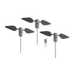 Included: 3 units, 3 sets of wings, remote with intermittent timer, and metal stakes.