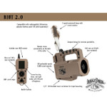 The Riot 2.0 is designed for performance and portability, while maintaining superior sound quality. An upgraded body housing adds even more durability to the Lucky Duck Predator caller lineup. Transporting your caller has never been easier with the remote and decoy conveniently stored on the unit. The Riot includes 150 preloaded sounds (capacity of 2,000), a 3-speed motorized decoy, and remote control with a range of 300+ yards. All sounds are live animal recordings compiled by The Verminator, Rick Paillet. The Riot runs on 10 AA batteries, and the remote runs on 3 AA batteries (not included).