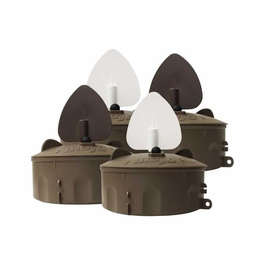 The patented (US Patent No. 10,517,291) FLOCK A FLICKER™ proved to be one of the most popular waterfowl hunting products to come along since the spinning wing decoy. WHY? Because they worked when used in multiple units, as they mimic the random, quick "flashes" or "strobe" given off by a flock of contented ducks sitting on the water or dry ground, telling other ducks: It's OK to land here. If you observe a flock of contented ducks, you will see these random "flashes" that rotate or flicker throughout the flock. MOJO® has improved on this ground-breaking concept with the FLOCK A FLICKER™ 2 4-Pack, including an upgraded housing with all other components same as the original which emits the same flash. With any spinning wing product, faster is better, and these blades (or wings) turn super fast. Packaged in a set of 4, add multiple sets to your spread for an ultra-realistic look.