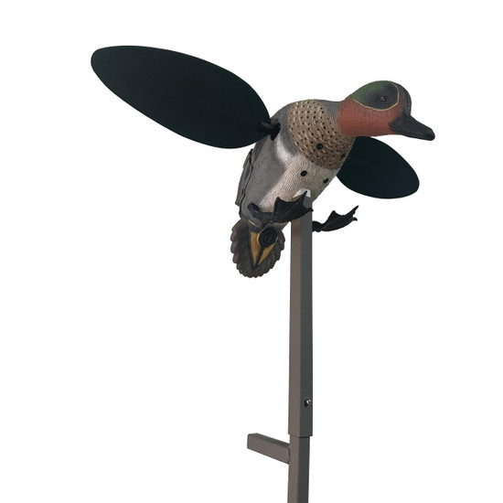 MOJO's original Green Wing Teal introduced in about 2007 has consistently been one of our most popular decoys and our first waterfowl decoy that was designed with super-fast wings, to which ducks are more attracted than wings of more normal speed. MOJO® announces the introduction of an upgraded version, which we call MOJO® Green Wing, and which has significant upgrades as shown below. While this decoy represents the green wing teal, it is NOT only for teal, but as a result of the super-fast wings, it is ideal for hunting any bird species that are attracted to the spinning wing.