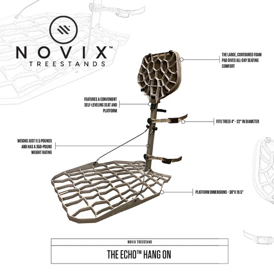 The Echo™ Hang On Treestand is our benchmark model. The larger platform provides comfort for all-day sits yet is light enough to compliment the mobile whitetail hunter. The all-cast aluminum platform makes this stand completely silent and free of creaks and pops when temps fluctuate. That solid aluminum construction also helps the stand lock into tree bark when tightened with the included cam belts. This stand comes with a Lifetime Warranty on the cast-aluminum platform.
