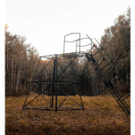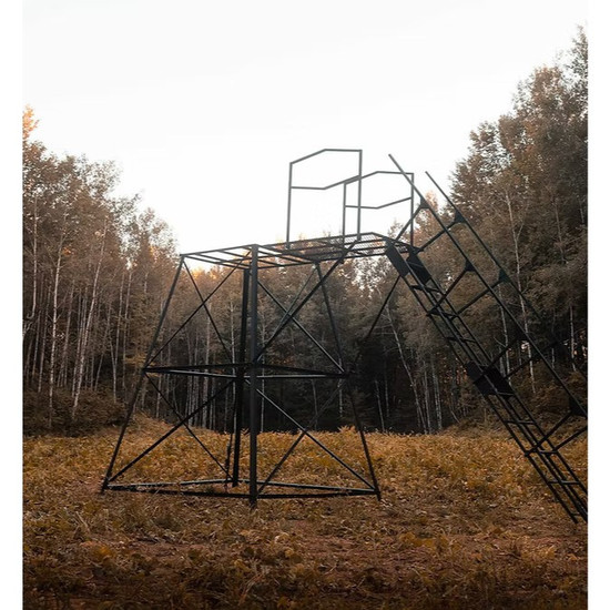 All steel and powder-coated elevated hunting stands that only require two tools for assembly - 9/16" wrench and a power impact drill. Eight corner- to-corner angle braces give this elevated hunting stand a superior structural design.