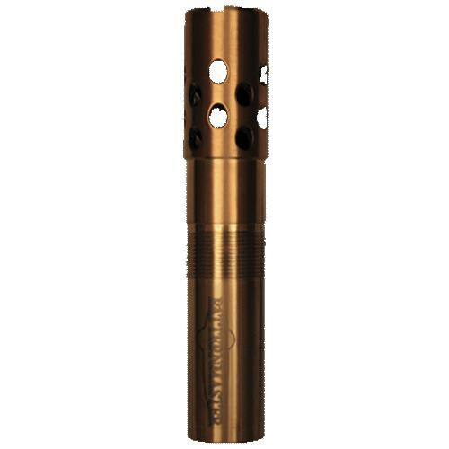 Patternmaster's CODE BLACK GOOSE tubes will extend out the end of your barrel 1 1/2 inches and has an effective range of 80 yards. The difference between the Patternmaster CODE BLACK DUCK and Patternmaster CODE BLACK GOOSE is the length the tube sticks out the barrel. (DUCK=1" vs. GOOSE=1 ½") The added length is to accommodate a 3 ½" shell and still achieve a Full pattern. You will see a patterns similar to a Full constriction choke on paper with a 2 ¾" 3’ and 3 ½" shell, but because of the patented "stud ring" inside the tube, there is a much shorter shot string. This shorter shot string will allow more shot on target all at once so your down range energy is sure to kill instead of cripple. Pick your favorite shot size to use which can range from 8 to T-Shot Non-Toxic/Steel and Lead 8 to 000 Buck. CODE BLACK GOOSE tubes only come in a Non-Reflective Bronze titanium coating and are ported. Patternmaster tubes are made of Carpenter Custom 630 (aircraft quality) 17-4ph stainless steel and are heat treated to the optimum level for best performance.