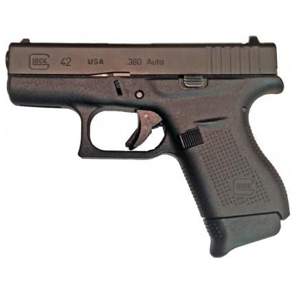 A magazine extension grip for the GLOCK 42 (.380 cal). This extension replaces the magazine floor plate providing one extra round of capacity and approximately 3/4" additional gripping surface for better control and comfort while also incorporating the factory texture pattern.