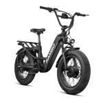 Additional features include a bright front LED headlight, removable rear taillight, integrated rear rack, and front and rear fenders -- making this eBike ideal for hunting, trail riding, and all-day adventures. Raised handlebars enhance comfort and handling, while the compact 20" wheel design maximizes torque and maneuverability.