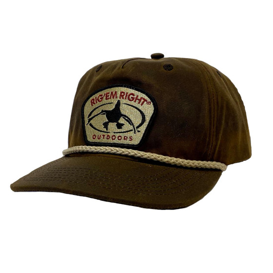Rig'Em Right®'s waxed cotton rope & patch hat features plastic snap closure,heavy cotton canvas with waxed finish,rope trim,unstructured frame and flat bill