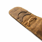 Our leather mouth call wallet is classic, timeless, and a must-have for Spring Turkey hunting fanatics. Braided leather lanyard secures the wallet around your neck. The wallet has magnetic closure, keeping yelpers secure with simple, quiet access. Mossy Oak Original Bottomland in-lay.