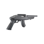 Ruger's 22 Charger is great for plinking. This semi-automatic pistol features a 10" cold hammer-forged barrel with ultra-precise rifling for exceptional accuracy, longevity, and easy cleaning. The factory-installed Picatinny rail provides ample room for your optics. The barrel has 1/2"-28" threads which accepts most suppressors and flash hiders, and includes a factory-installed thread protector. The standard A2-style grip can be easily changed for any MSR grip, and the BX-15 magazine's 15-round capacity is the perfect length when shooting with the included adjustable bipod, prone or from the bench. This Charger model has a takedown-style stock which quickly and easily breaks down into two sections for convenient storage and transport.