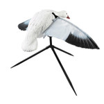 The Super Flapper HDi 2.0 -Snow Goose gives your spread the realism and natural motion it has been lacking for years. With an ultra-realistic paint scheme and design, the Super Flapper HDi 2.0 has an increased range of motion that when paused, the wings stop in the down most position. Operated on a 12v lithium-ion battery, built to withstand any weather, and provide consistent power. The battery and remote receiver are stored in a completely sealed battery box that keeps elements out. Want longer run time? An included 10' external lead will allow you to connect to any Lead Acid or Lithium 12v battery. The chest module has external charging, on/off operation, and remote programing. This goose flapper is designed to simulate a landing snow goose. The magnetic wings feature a life-like wing print on one side, and white on the bottom. Made of a durable one-piece EVA plastic that will withstand years of punishment, and 3 speed settings (slow, medium, and fast) that are controlled by the HD Remote 2.0.