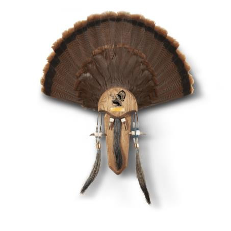Proudly display your trophy gobbler. Includes natural oak finish plaque with laser engraved gobbler, engravable brass name plate and antique brass cup hooks. Also comes with leather for spur mounts.