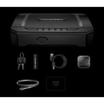 Quick access to your valuables and documents from the auto open lid. Gaming inspired action of the back-lit keypad offers positive feedback for fast entry and over 40,000 unique combinations.