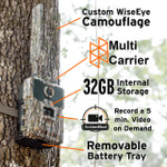 The camera features a custom-design with a blend of tree bark and owl feathers, The WiseEye Camo pattern will blend into any forest environment!